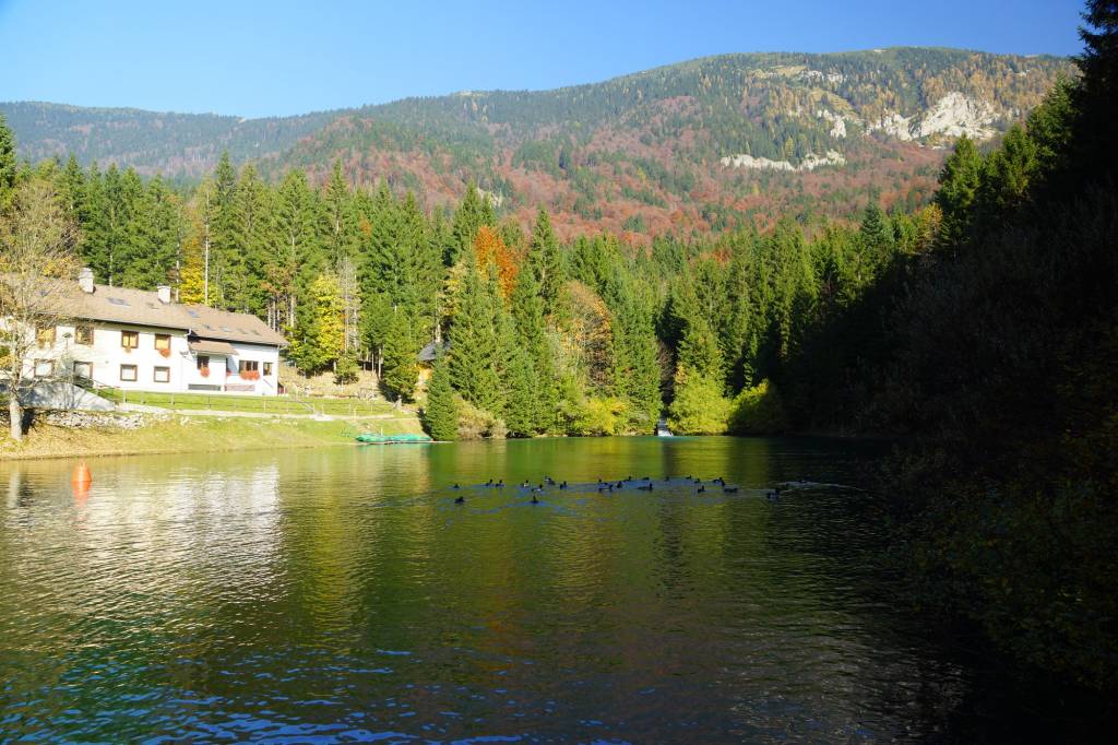 Der See liegt auf dem Ende des Wegs in Javorniški rovt bei der TRILOBIT Hütte. Die Wasseroberfläche des Sees ist 1 Ha.